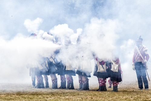 This is another image which is all about the timing. At first I thought the smoke was too much but it does emphasise what happens and I like the commanding officer who manages to avoid being engulfed! The smoke is bright and featureless and I wonder if there was more detail in there to be brought out that could have made this even more dramatic. |