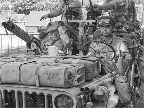 This is a well taken and nicely produced image. The monochrome treatment is very nicely done and I like the look on the faces. The detail and contrast is very good indeed. The only comment I would make is to crop off the left of the image that includes the gun. I realise this could be seen as an important part of the scene but including it also includes the railings and modernity in the background. Crop it out and the image becomes timeless. |