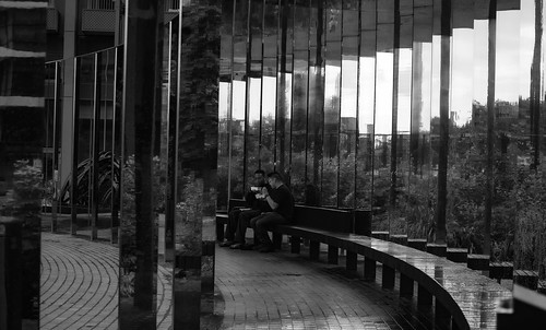 An interesting image. I like the use of the various panes of glass and mirrors to give the reflections. The two figures are nicely placed and there are leading lines that take us to them. Using monochrome is a good idea but the tones are a little muddied here. If possible I would try and lift and separate some of the mid tones. This would give some extra life to the image. Well done on something different though. |