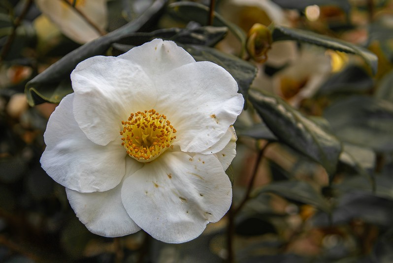 There is some nice detail and texture in the flowerhead here and I like how the depth of field chosen has ensured that it stands out from the background.There is a bright line around the flower which might indicate some aggressive sharpening in post processing. It isn't too prominent but something to watch for. Although there are some distracting highlights in the background the flat lighting has allowed for all the wonderful textures in the petals to be captured. |