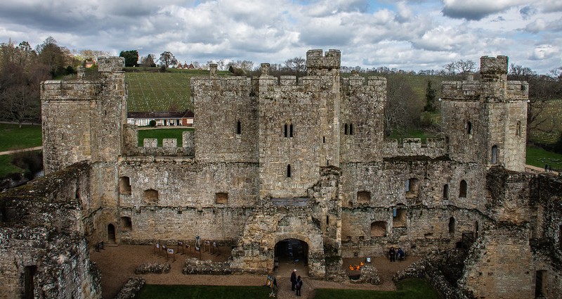 Bodiam Castle is a place I have visited many many times since I was a young child and I wonder how many people having seen the exterior are surprised by the ruins within as clearly shown here? The photographer obviously visited on a quiet day as I have been here when the castle has been over run by visitors. This is the view from the postern gate looking towards the main gateway. The flat lighting has given us a wealth of detail. It is unfortunate that the visitor building distracts above the battlements but that is unavoidable. There does appear to be some noise in the image which has taken away some smooth tones but overal this is a good record image of the interior of the front wall of the castle. |